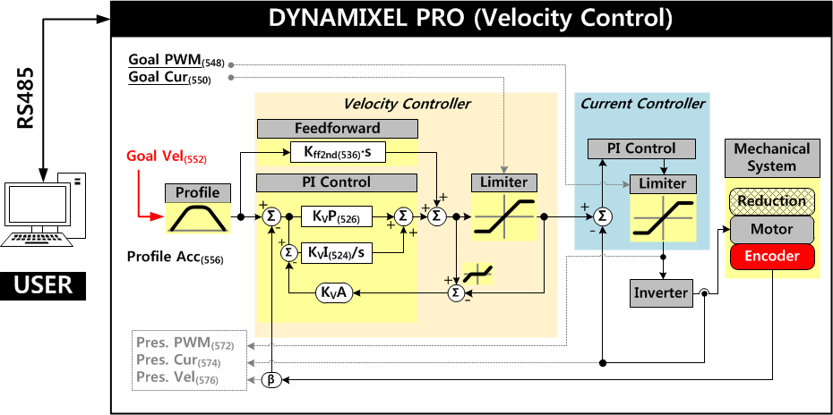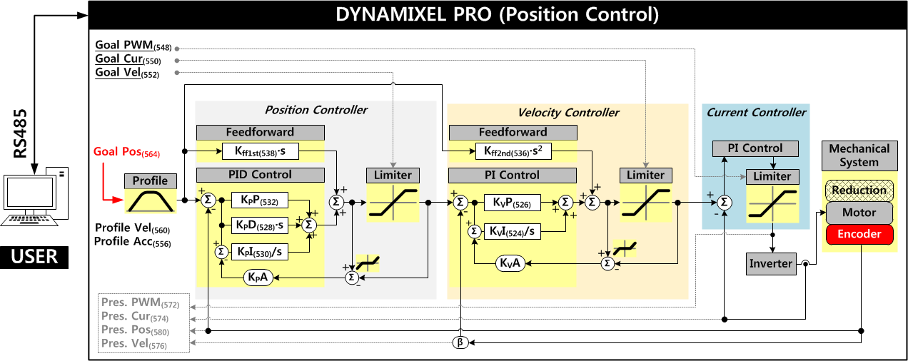 WARNING : DYNAMIXEL-P servos use a different Control Table layout than DYNAMIXEL PRO series actuators. Please verify the control table addresses used in your control program attention when transitioning from DYNAMIXEL PRO to DYNAMIXEL-P.