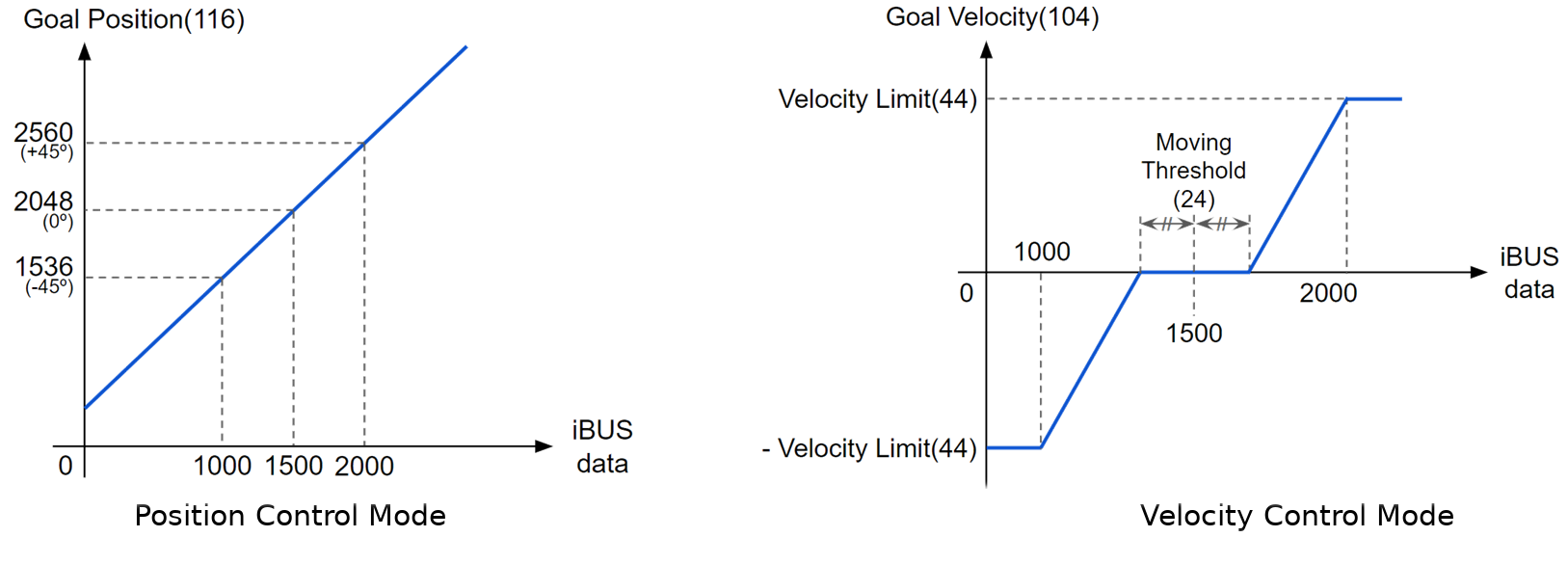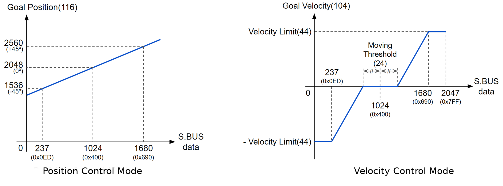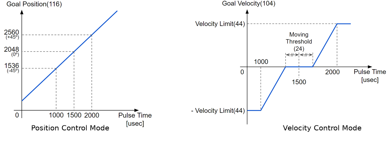 | Operating Modes | Current Control Mode Velocity Control Mode Position Control Mode (0 ~ 360 [°]) Extended Position Control Mode (Multi-turn) Current-based Position Control Mode PWM Control Mode (Voltage Control Mode) |