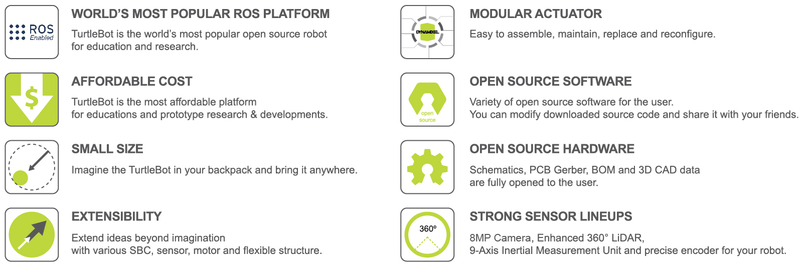 - The TurtleBot brand is managed by Open Robotics, which develops and maintains ROS. Nowadays, ROS has become the go-to platform for roboticists around the world. The TurtleBot family can be integrated with existing ROS-based robot components, but TurtleBot3 is designed to be an affordable base platform for those who want to get started learning ROS.