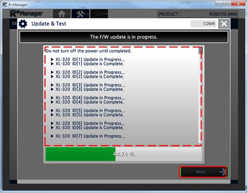 Wait until the update has been properly completed and click the “Next” button.