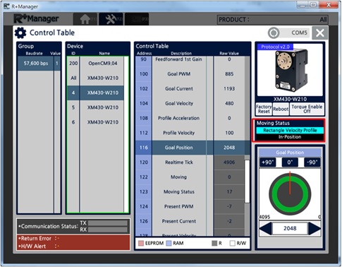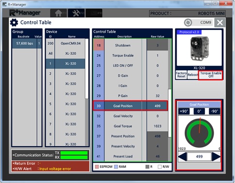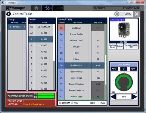 - You can check DYNAMIXEL response status through the “Response Error” message on the lower left corner.