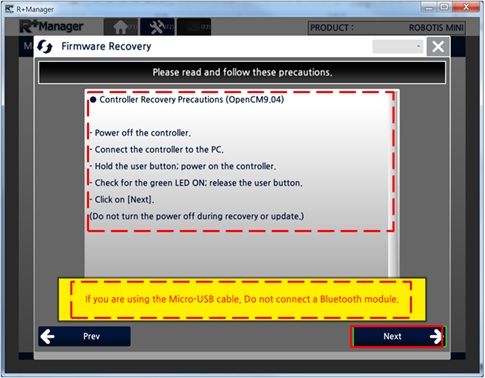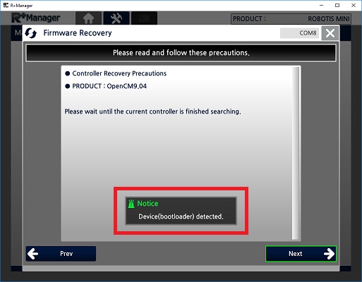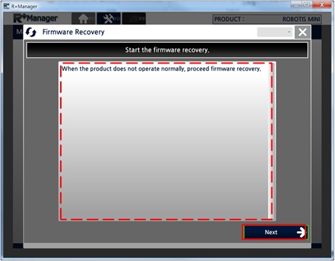 In the Home Tab, select the product that you wish to recover. (ROBOTIS MINI was selected in the example below)
