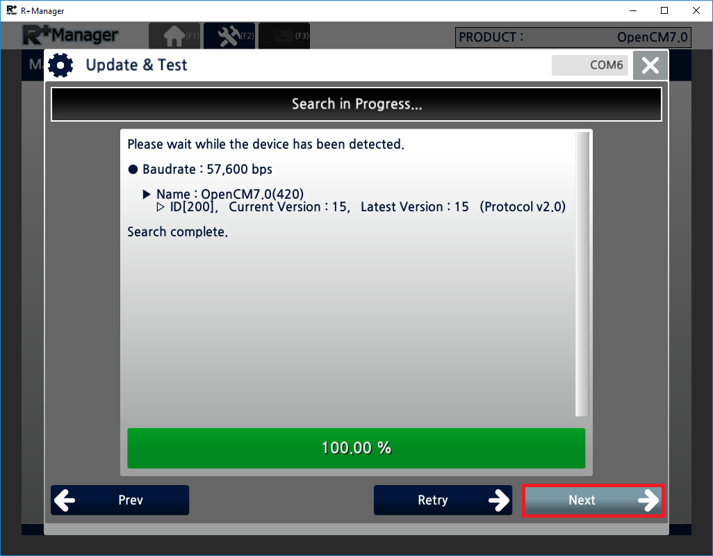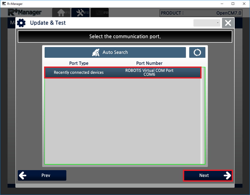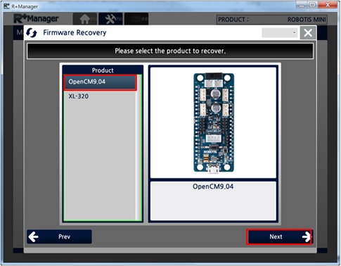 Select the product you wish to recover and click the “Next” button. (OpenCM9.04 was selected in the example below)