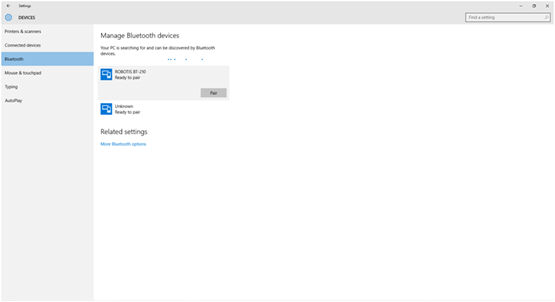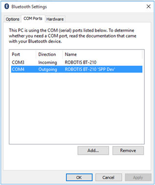 Add a Bluetooth serial port by following the instructions below (Example below shown for Windows10).