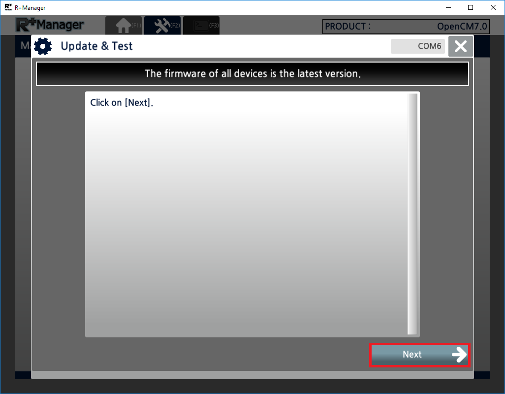 If connected device already has the latest firmware, you will see below screen.